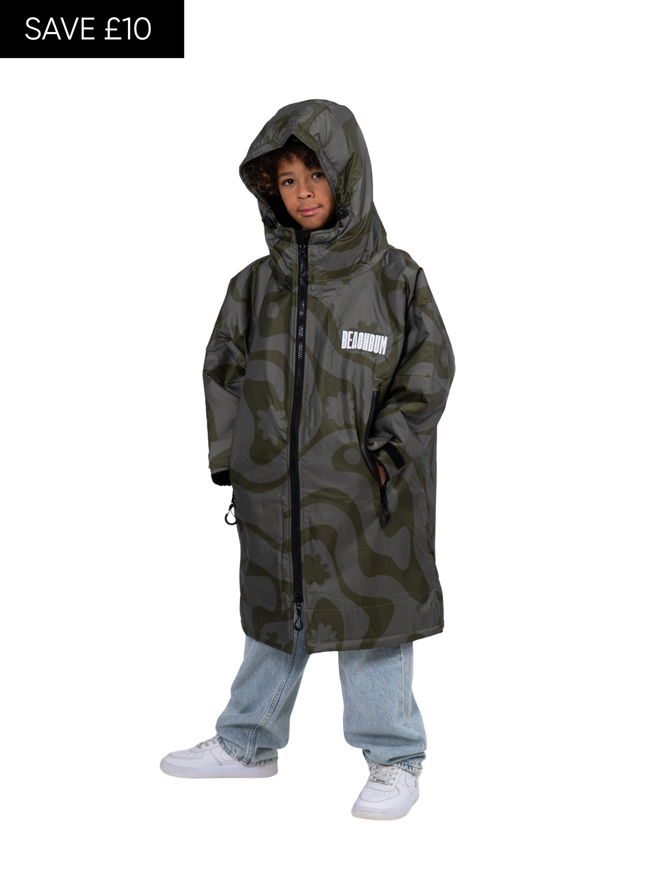 From quick dips to long beach days, the kids Olive Green Brobe keeps them out there, whatever the weather.