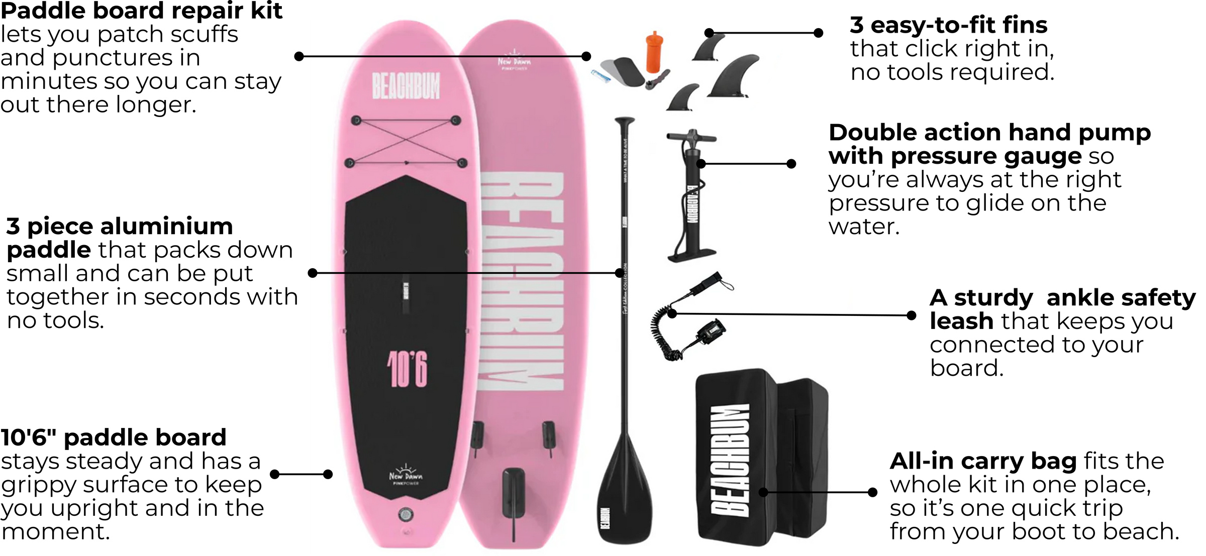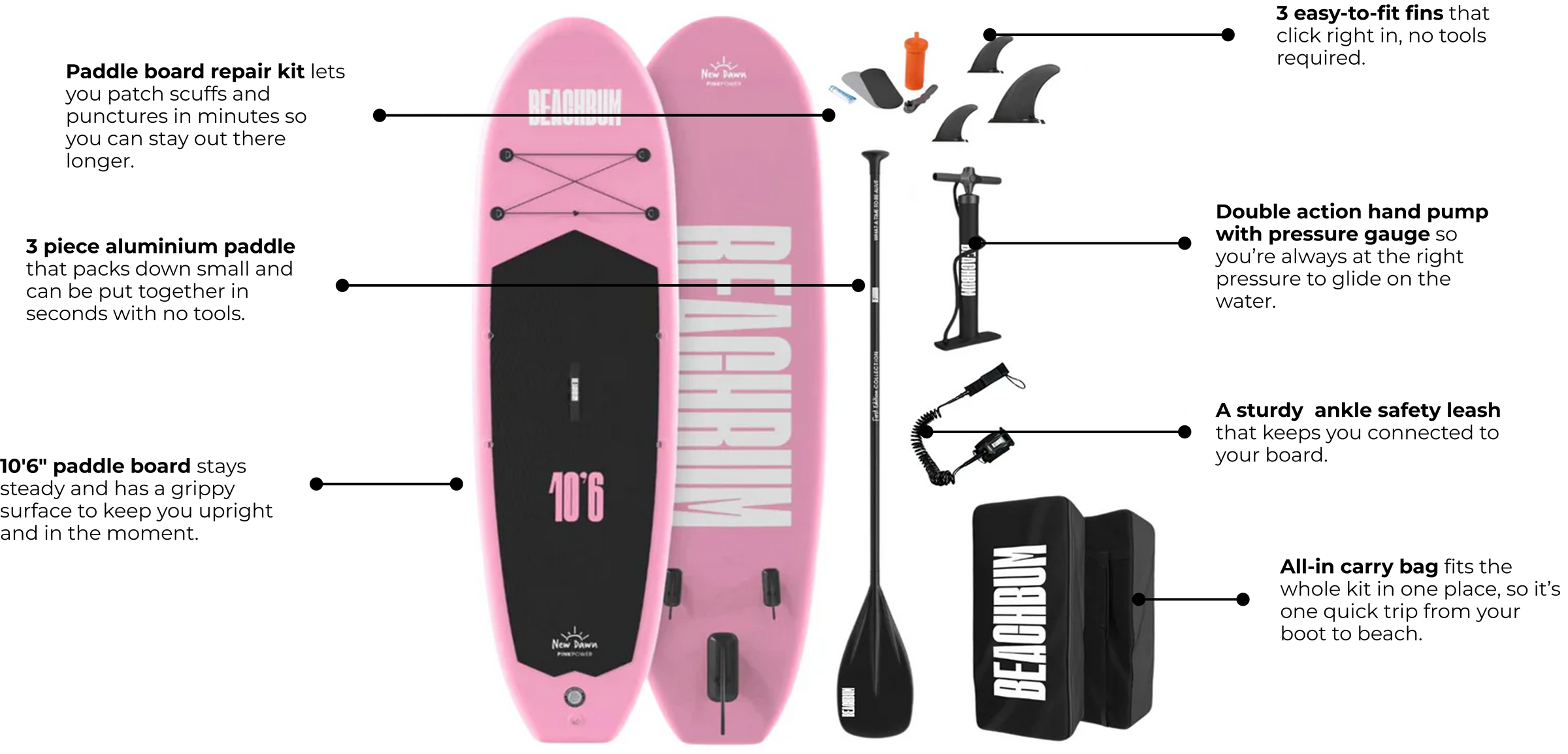Whether you fancy a quick half hour on the water after work, an early morning paddle down stream or a weekend of making memories with the little ones, the Pink Power makes getting out there simple. We designed it to pump up fast, pack down small, and be steady enough for a passenger (of the human or four-legged variety).